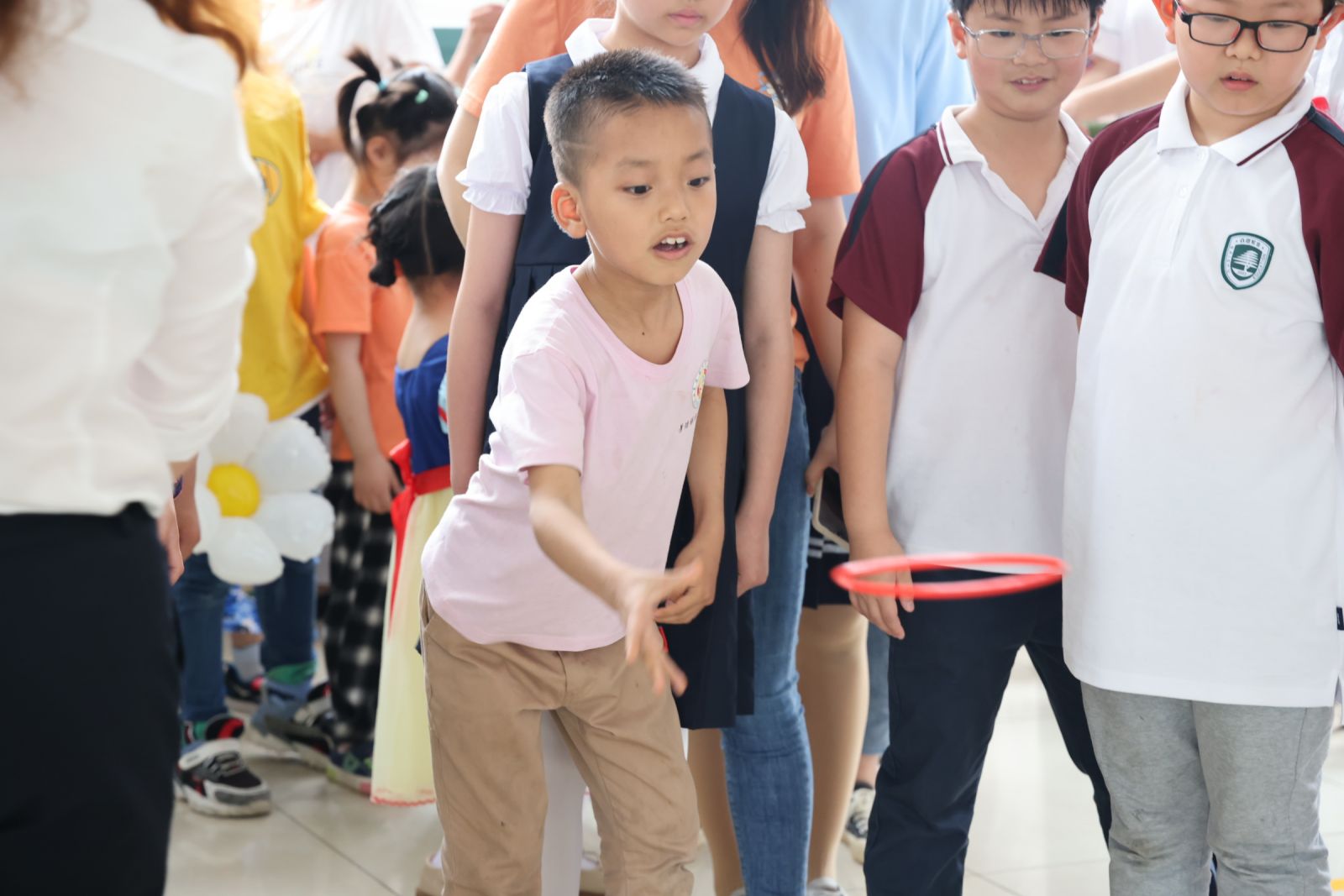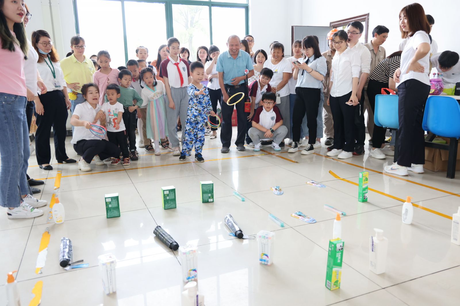 六一套圈圈,套住幸福,套住快樂。翻滾式、飛躍式、天女散花式的套圈現場,宛如一個兒童樂園,隨著一個個圈圈在空中劃過,現場掌聲、歡呼聲此起彼伏,一個個獎品也被陸續(xù)套走,大家滿載而歸,孩子們套中了物品,也套中了幸運和快樂。