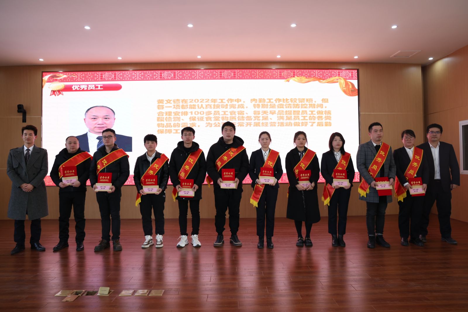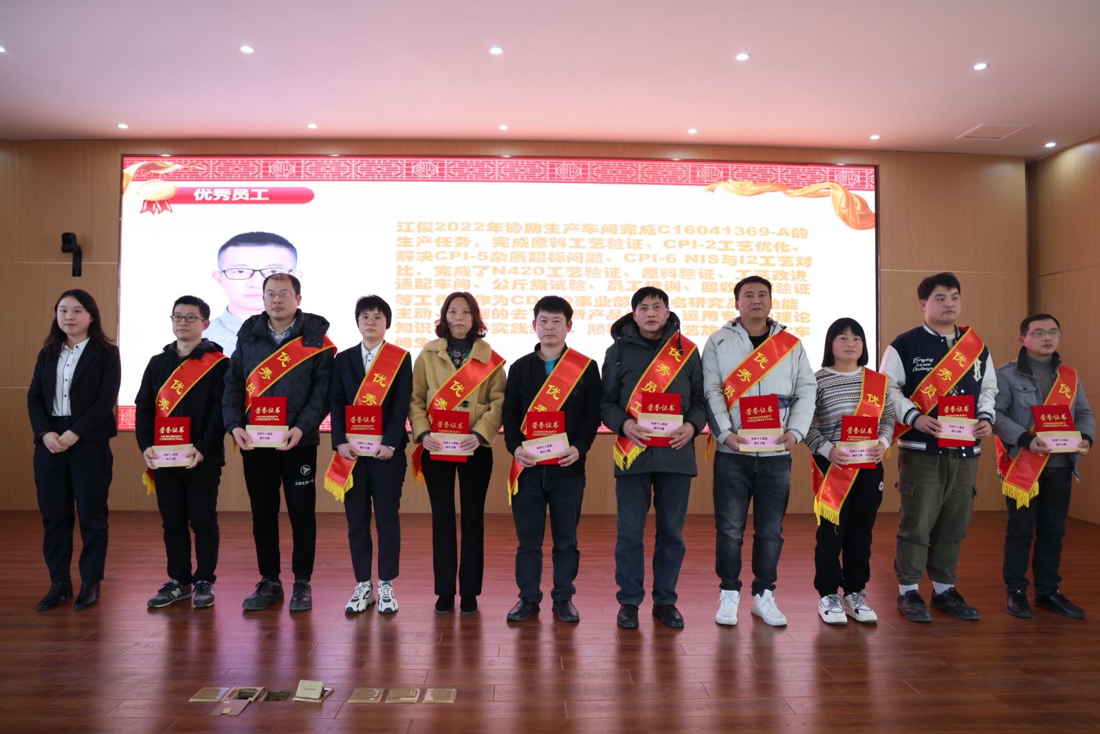 在大家熱烈的掌聲和期待的目光中,富祥藥業(yè)黨委書記、副總經(jīng)理戴貞亮同志宣讀了《關(guān)于表彰2022年度先進(jìn)集體、優(yōu)秀干部和優(yōu)秀員工的決定》,此次共評選出“先進(jìn)集體”5個,“優(yōu)秀干部”12名,“優(yōu)秀員工”39名。