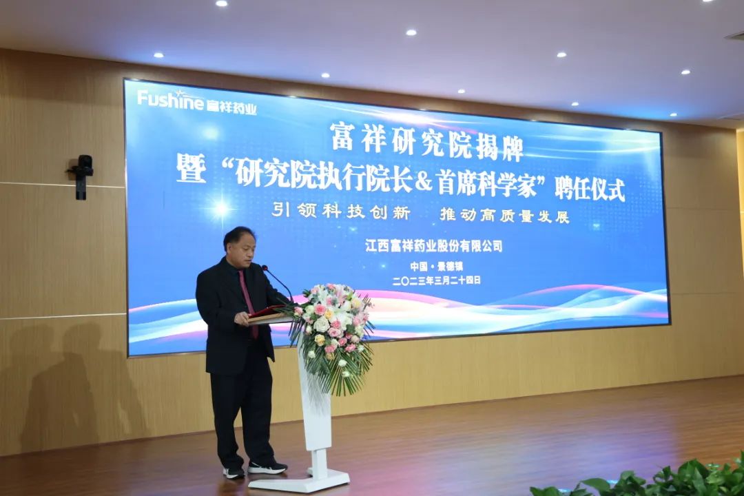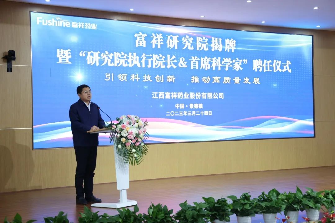 高新區(qū)管委會主任、昌江區(qū)委書記倪衛(wèi)春在致詞中指出,富祥藥業(yè)是全市優(yōu)質(zhì)的民營企業(yè)代表之一,多年來深耕醫(yī)藥大健康產(chǎn)業(yè),主動轉(zhuǎn)型升級,在新賽道上又邁出了堅實的一步。研究院的成立是立足自身產(chǎn)業(yè)特色、增強工業(yè)研發(fā)實力、助推新舊動能轉(zhuǎn)換的重要舉措,將成為招大引強的重要平臺、人才集聚的重要基地、工業(yè)倍增的重要助力,對全區(qū)乃至全市的工業(yè)發(fā)展和科技創(chuàng)新領(lǐng)域都具有重要意義。昌江區(qū)將繼續(xù)堅持以服務(wù)工業(yè)發(fā)展、服務(wù)科技創(chuàng)新為己任,積極提供最優(yōu)質(zhì)的服務(wù)、創(chuàng)造最優(yōu)良的環(huán)境,幫助研究院和廣大優(yōu)質(zhì)企業(yè)盡快發(fā)展壯大,推動技術(shù)成果更快轉(zhuǎn)化為現(xiàn)實生產(chǎn)力,助力全市經(jīng)濟社會持續(xù)健康發(fā)展。